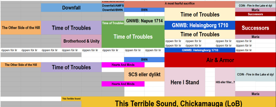 Ropeconissa pelattiin sotapelejä isolla porukalla. Perjantaina porukkaa olisi riittänyt kolmeen peliin ja muutenkin viikonlopun aikana oli useampi peli menossa. Tämän lisäksi syksyllä järjestettiin sotapelipäivä Sellon kirjastossa. Paikalla kävi päivän aikana noin 25 pelaaja, mikä on todella hyvä tulos. Tätä kirjoittaessa seuraava tiedossa oleva sotapelitapaaminen on Baltic Wargaming Convention Suomenlinnassa huhtikuun puolivälissä.