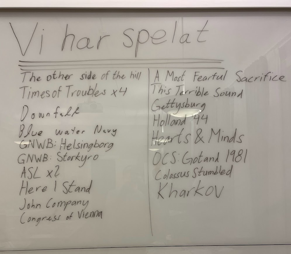 Kahdeksas vuosi lähtee liikkeelle hyvässä tilanteessa. Pelattavia pelejä löytyy hyllystä lukuisia (esim. Helsinki 1918, Russia Besieged: Deluxe Edition – Finnish Expansion, Buffalo Wings, Finnish Civil War, Winter Fury), tapahtumia on tulossa lähitulevaisuudessa ja juttuaiheita on selvästi enemmän kuin aikaa niiden kirjoittamiseen. Pelimekaniikka-artikkeleita on suunnitteilla useampiakin, mutta saa nähdä mikä lähtee ensimmäisenä etenemään. Sotapelien digitaalisista vaihtoehdoista on myös artikkeli-idea. Keväällä olisi tarkoitus järjestää uudestaan sotapelikysely, jonka ideointi ei ole vielä edennyt päästä paperille. Viimeksi kysyimme suosituinta teemaa, nyt olisi tarkoitus kysyä jotain muuta.