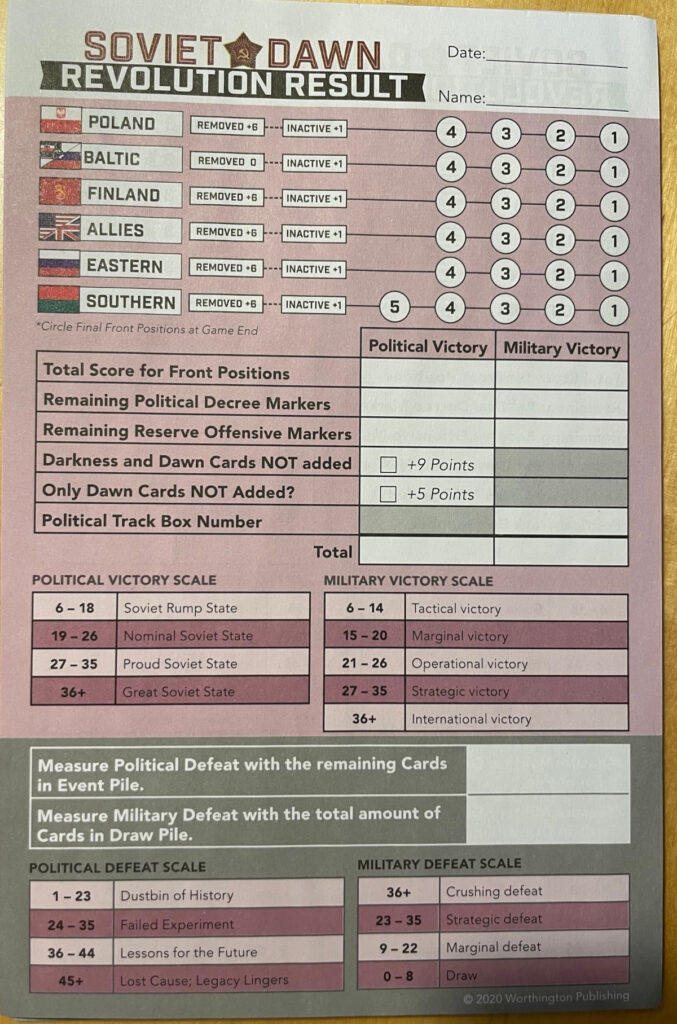 Vuoden ainut varsinainen arvostelu oli Juho Yliniemen kirjoittama, Venäjän sisällissotaa käsittelevä Soviet Dawn – Deluxe Edition (2020). Jossa toki siinäkin on Suomella pieni rooli.
