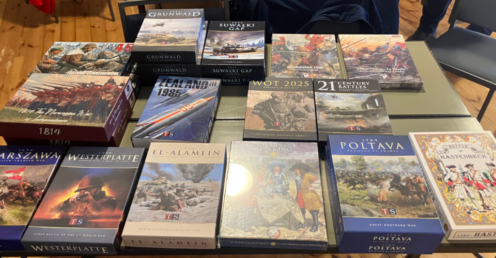 Lisäksi paikalla pelattiin ja testattiin Great Northern War Battles (GNWB) sarjan pelejä (kts. Kuvaus Napuen taistelua kuvaavasta pelistä täällä), Next War: Poland (2017), espanjanlaisten mukana tuoma Macià 1926: The Uprising That Never Was (2026), samoin espanjalaisten mukana tuoma Bizkaia 1937: The Iron Belt, All Bridges Burning: Red Revolt and White Guard in Finland, 1917-1918 (2020), Thirty Years of Misery (2026) ja montaa muuta peliä.